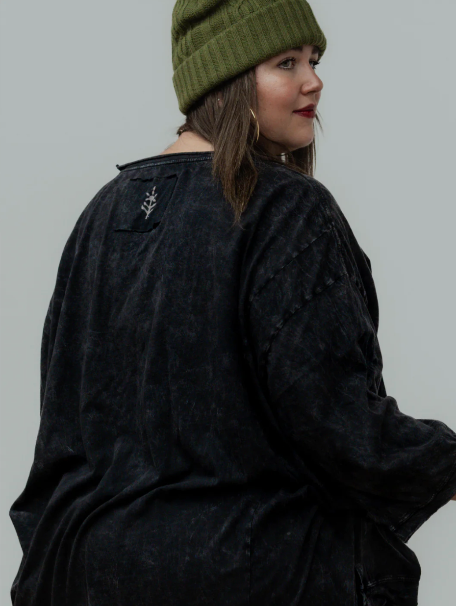 Made from 100% organic cotton using eco-friendly and sustainable manufacturing practices and all natural washes. Sewn, washed, and printed in the US.
