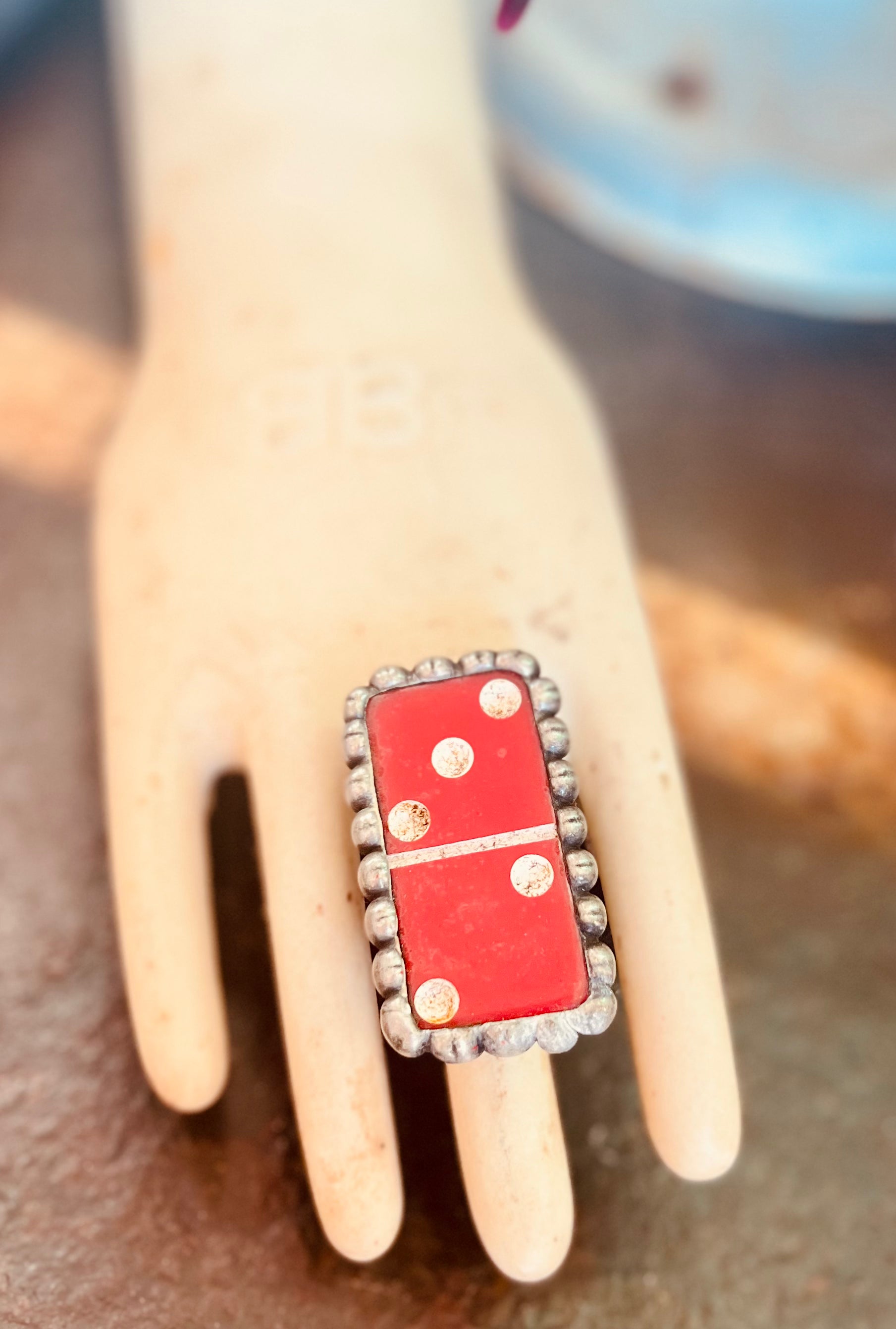 Get off your boring jewelry game and add some spunk to your style! Our Domino Ring is one-of-a-kind, handcrafted and soldered for durability. This top seller screams unique and funky, perfect for anyone who refuses to take themselves too seriously.