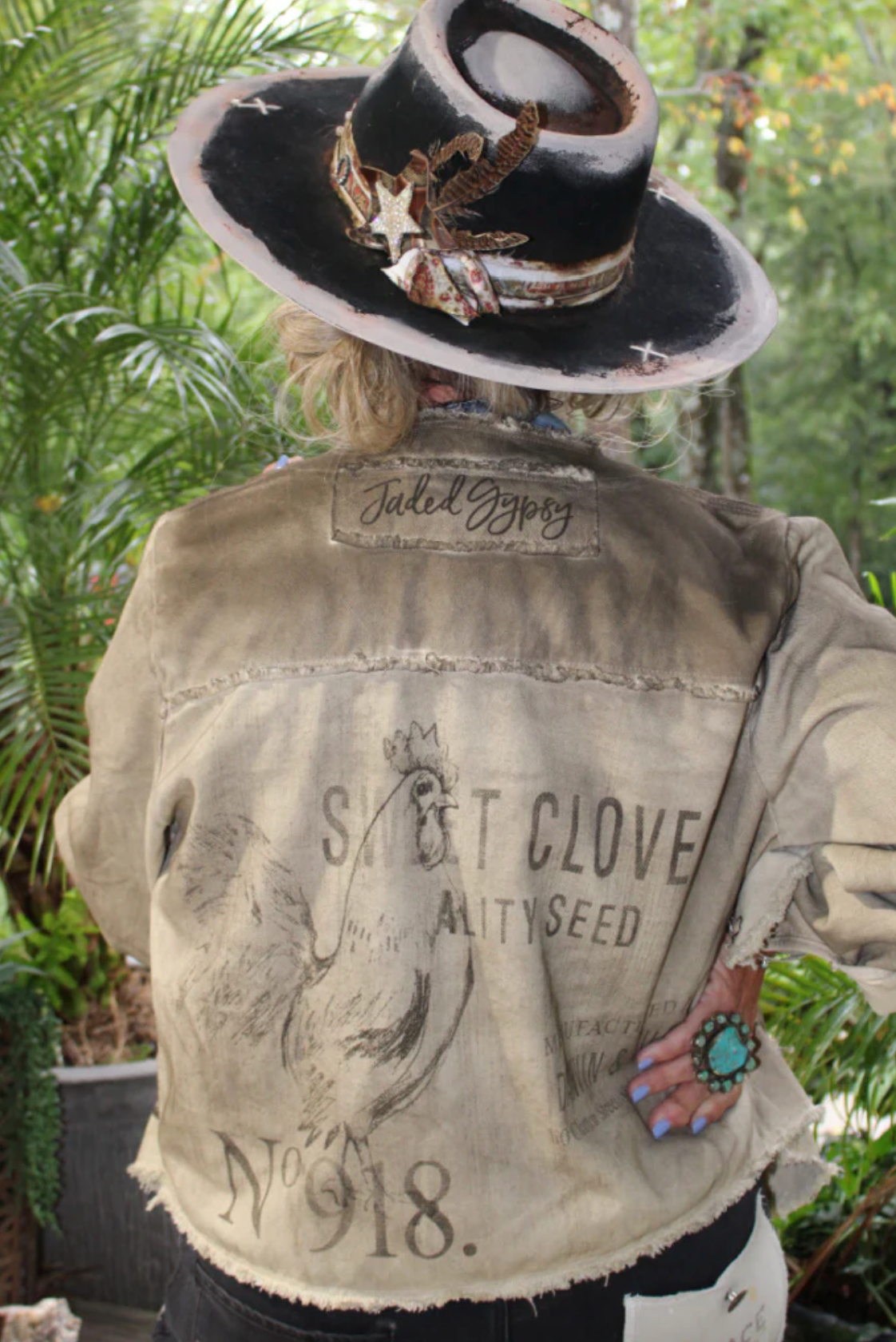 Embrace the western boho vibe with the Harvest Thread Jacket, crafted to resemble classic canvas with a soft, authentic feel. Featuring a unique poultry design on both front and back, this jacket adds a distinctive, stylish touch to any outfit. Perfect for layering, it effortlessly blends rugged charm with artistic flair, making it your go-to piece for standout casual wear.