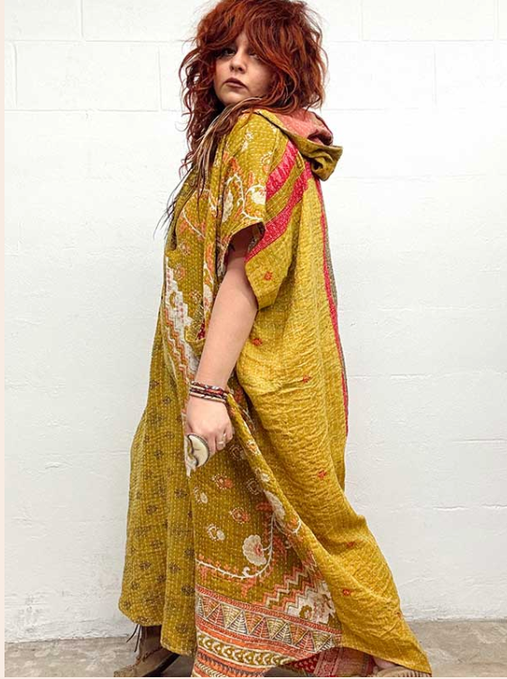 Disclosure: Our vintage styles have lived a full life before becoming the designs in our shop. Fabrics may have small threads or holes in the layers. Color inconsistency or small stains may be present. The saris are sewn together and extend the life of each design. Imperfections should be celebrated