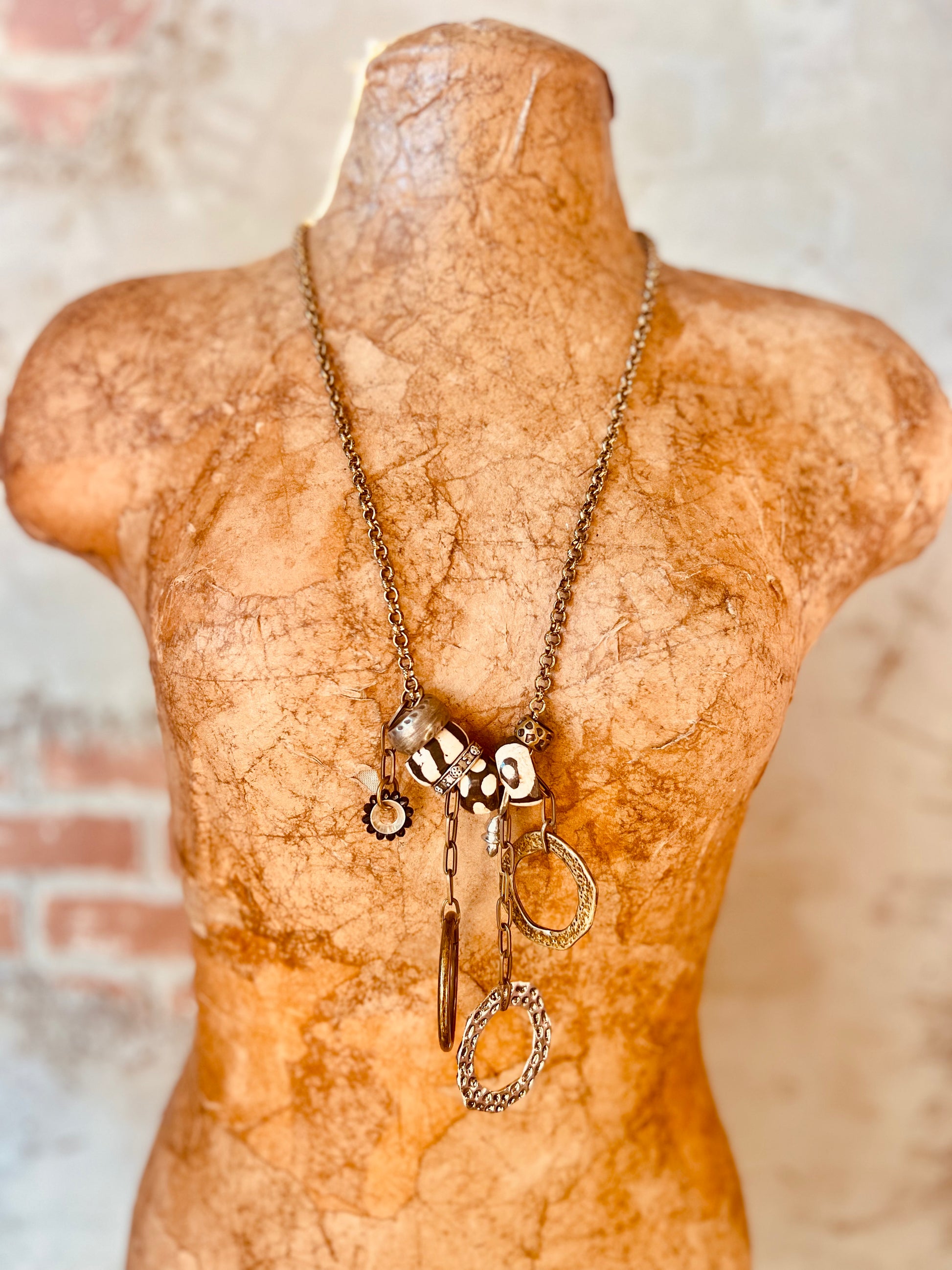 Get the perfect boho look with this vintage-inspired necklace made from multiple types of metals. With rings of all sizes and shapes in different styles, this necklace is perfectly paired for a unique and playful look. (Boho perfection in necklace form!)