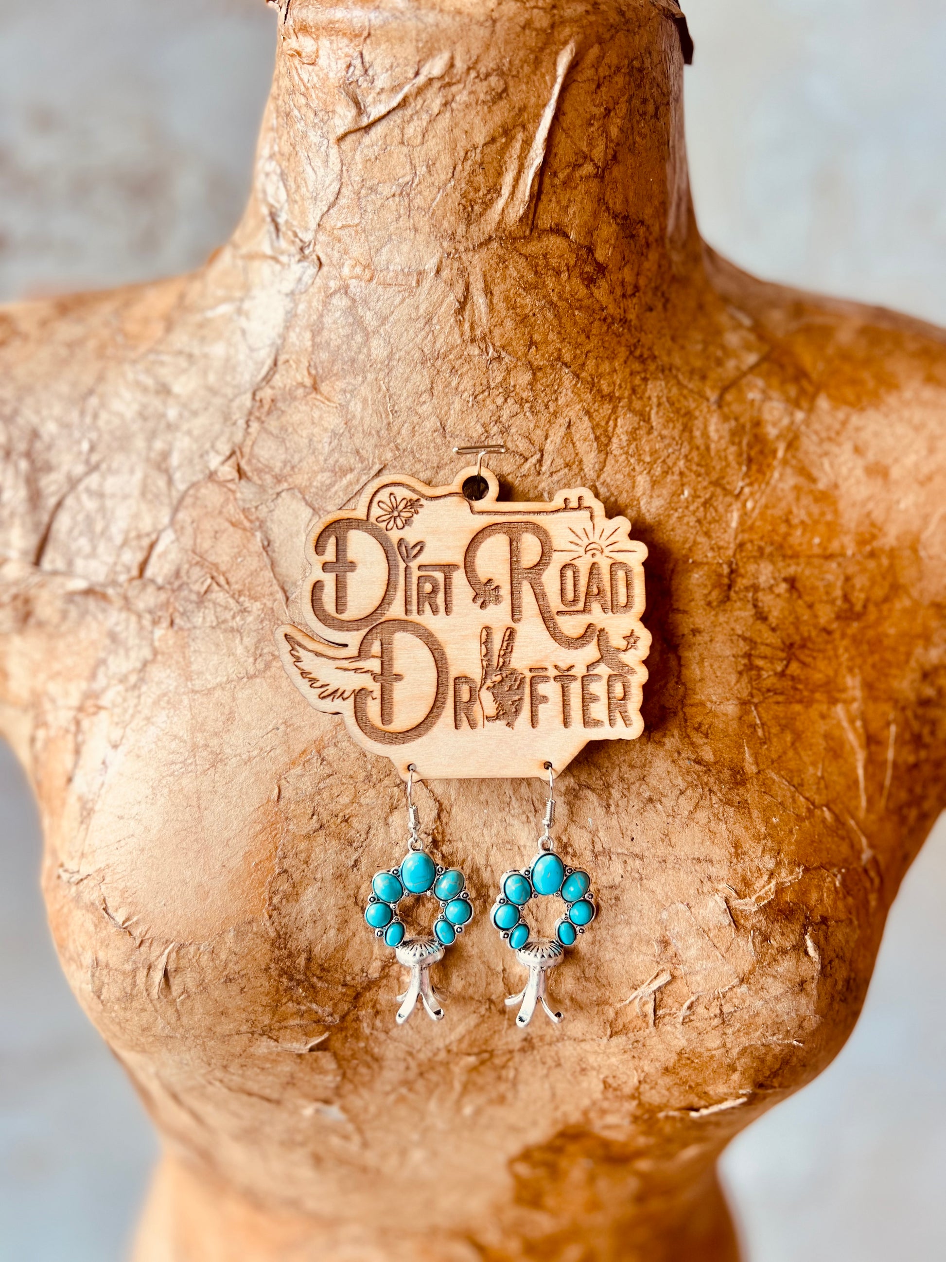 Add the perfect boho touch to any outfit! Made of silver with faux turquoise, these earrings offer a playful twist on classic dangles. Elevate your style game with these quirky and fun earrings!