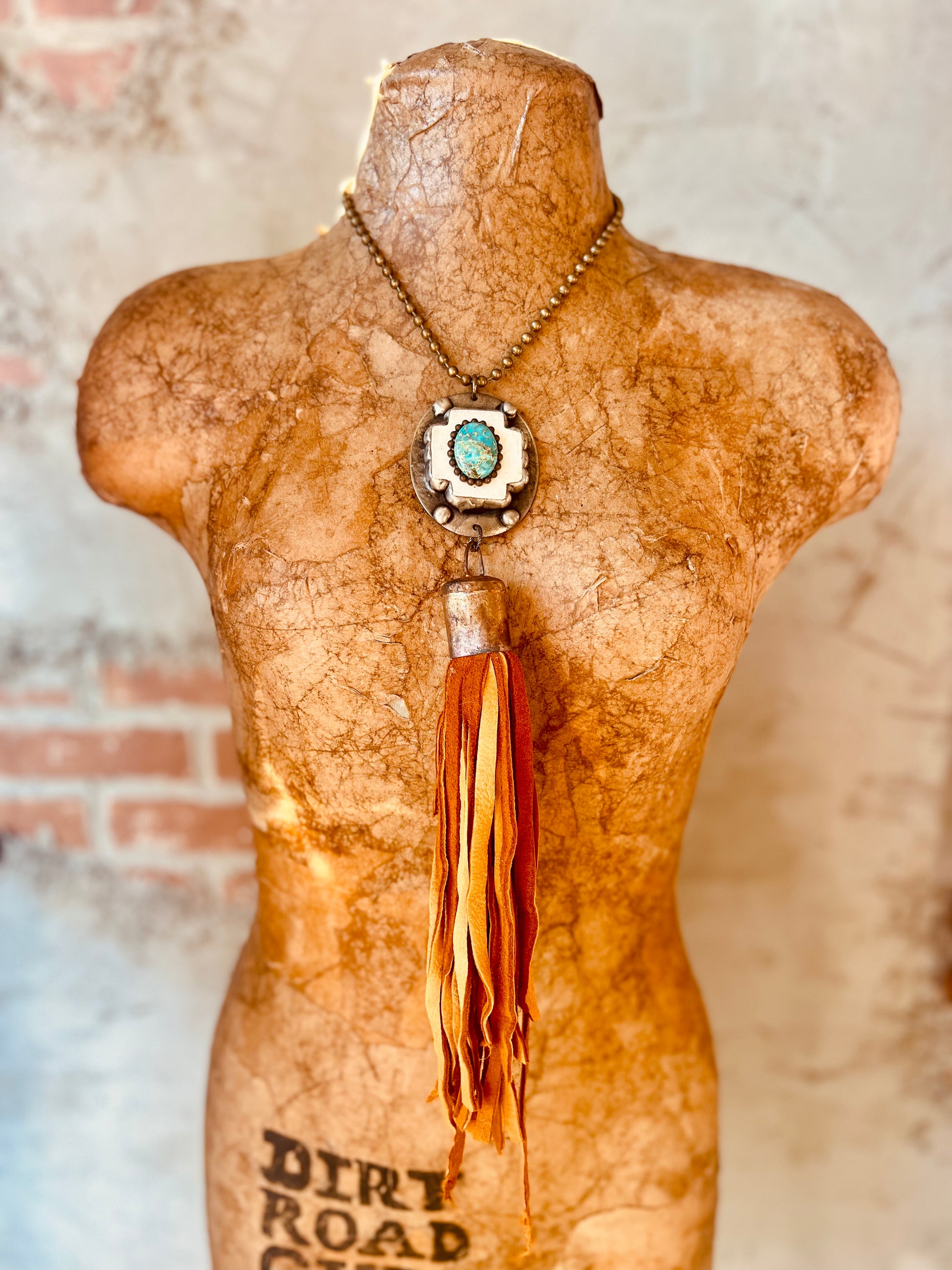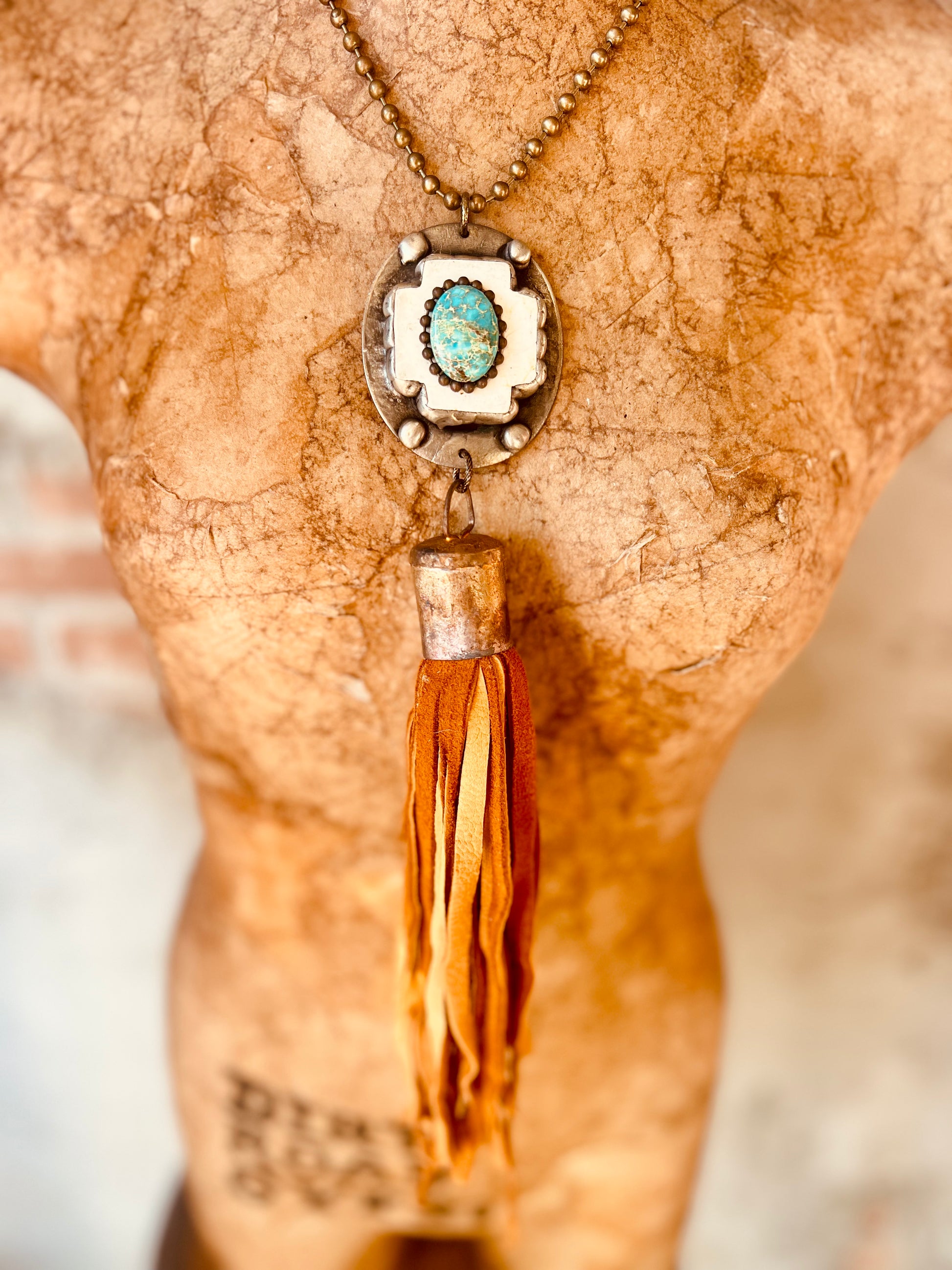 Unleash your inner wild spirit with our Western Chic Necklace! Featuring a stunning hand-carved bone cross and a leather tassel, this necklace exudes boldness and adventure. Perfect for those who love to take risks and make a statement! Go forth and conquer with your Western Chic style!