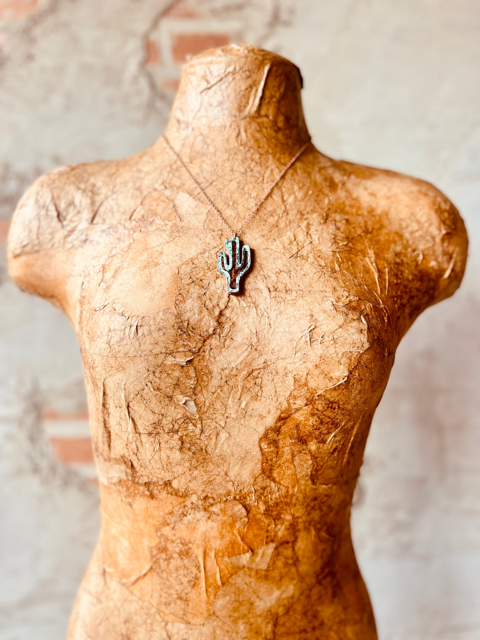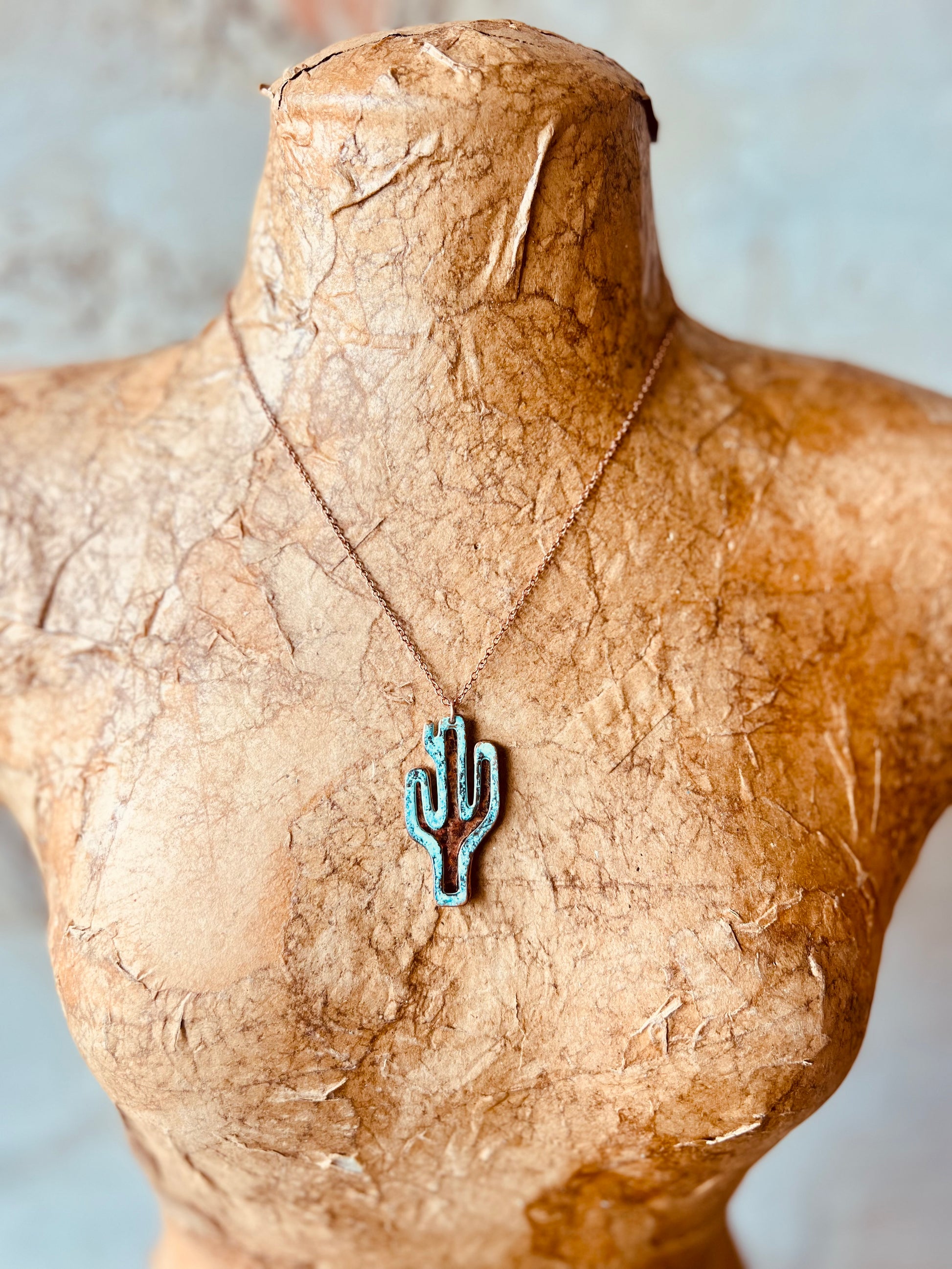The perfect bold but simple cactus necklace! Not too bold and not too simple. Beautiful faux patina turquoise with copper!